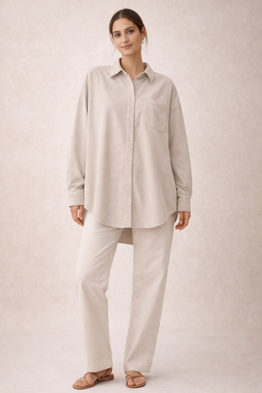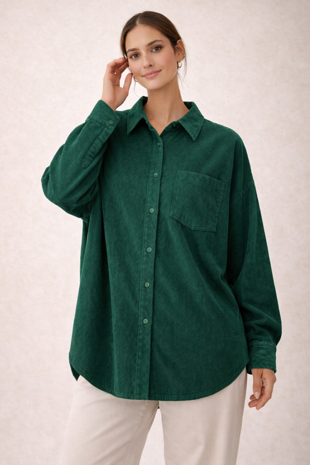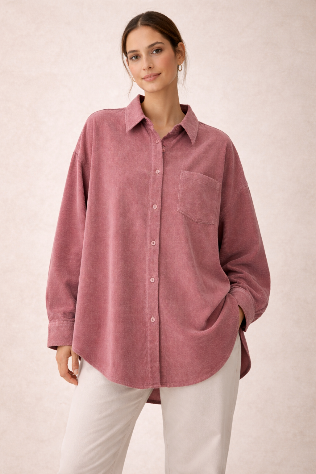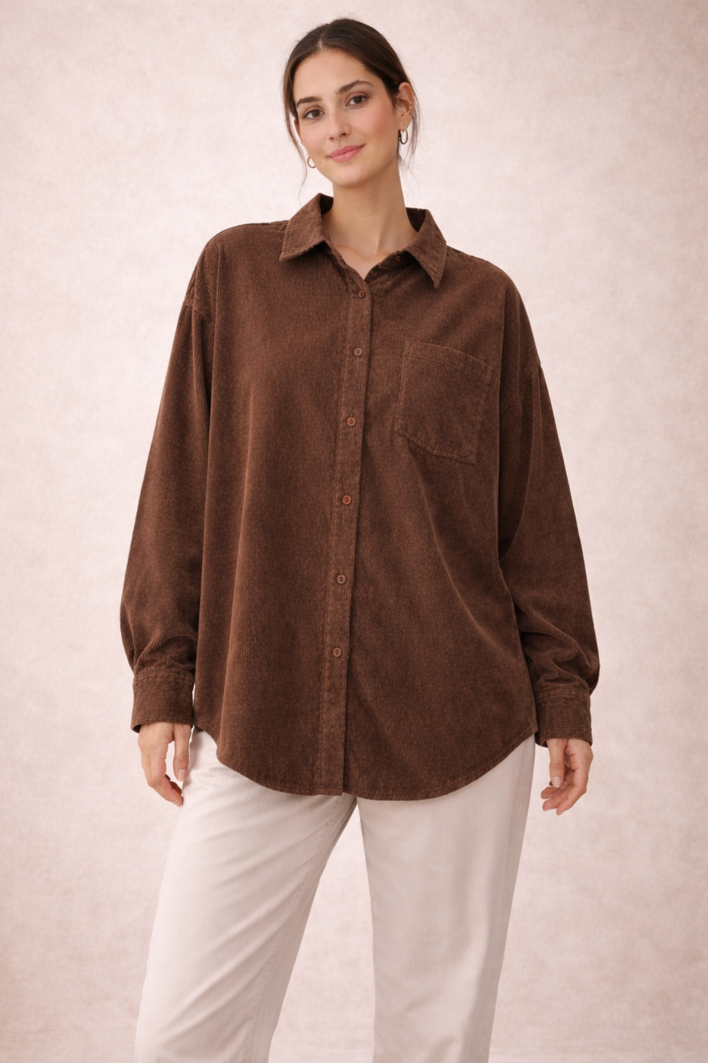 “شميز بقصة أوفر سايز مريحة وعصرية، مصنوع من خامة قطيفة مضلعة مستورده ناعمة تمنحك إحساس دافئ ولمسة فخامه تناسب أجواء الخريف والشتاء.